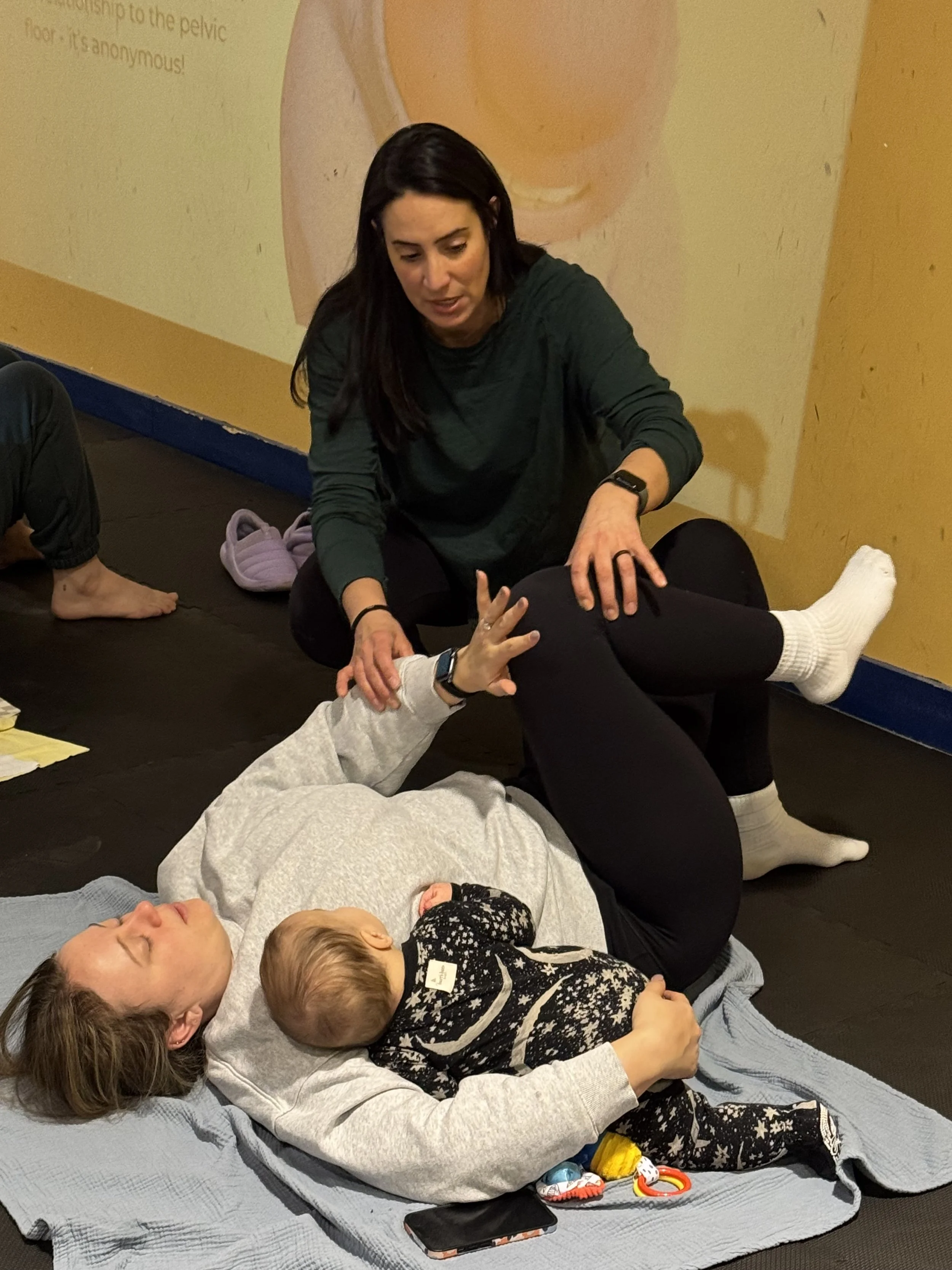 Many moms experience hip or low back pain during this time, as well as leaking urine with sneezing or coughing, pelvic pain, hip and SI joint pain.